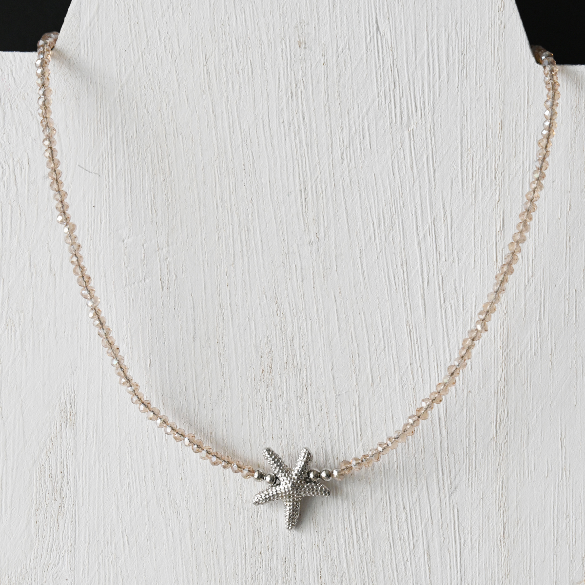 Crystal beaded necklace with starfish and an easy magnetic clasp.